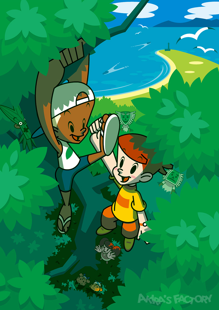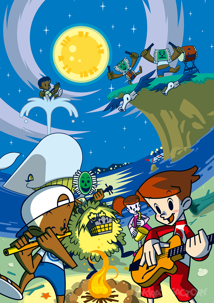 シリーズの始まり。「都会の子」と「島の子」が仲良く島で遊んでいるイメージです。島の精霊たちがそれを見守っています。