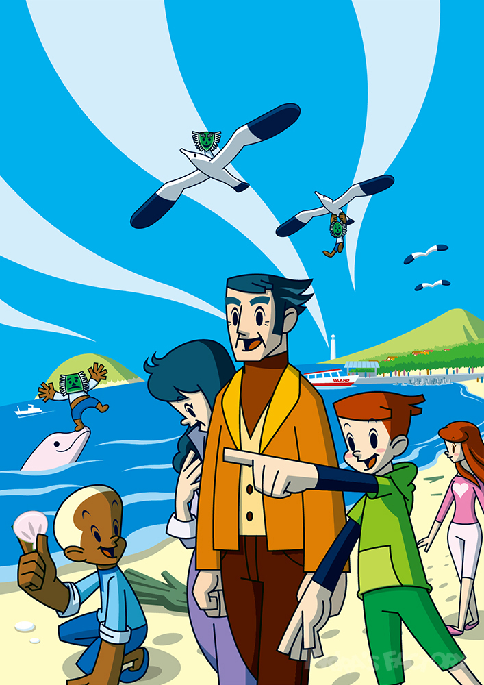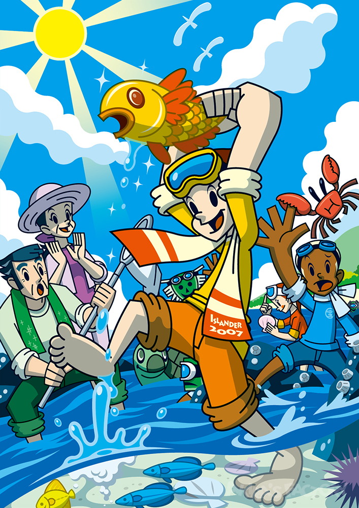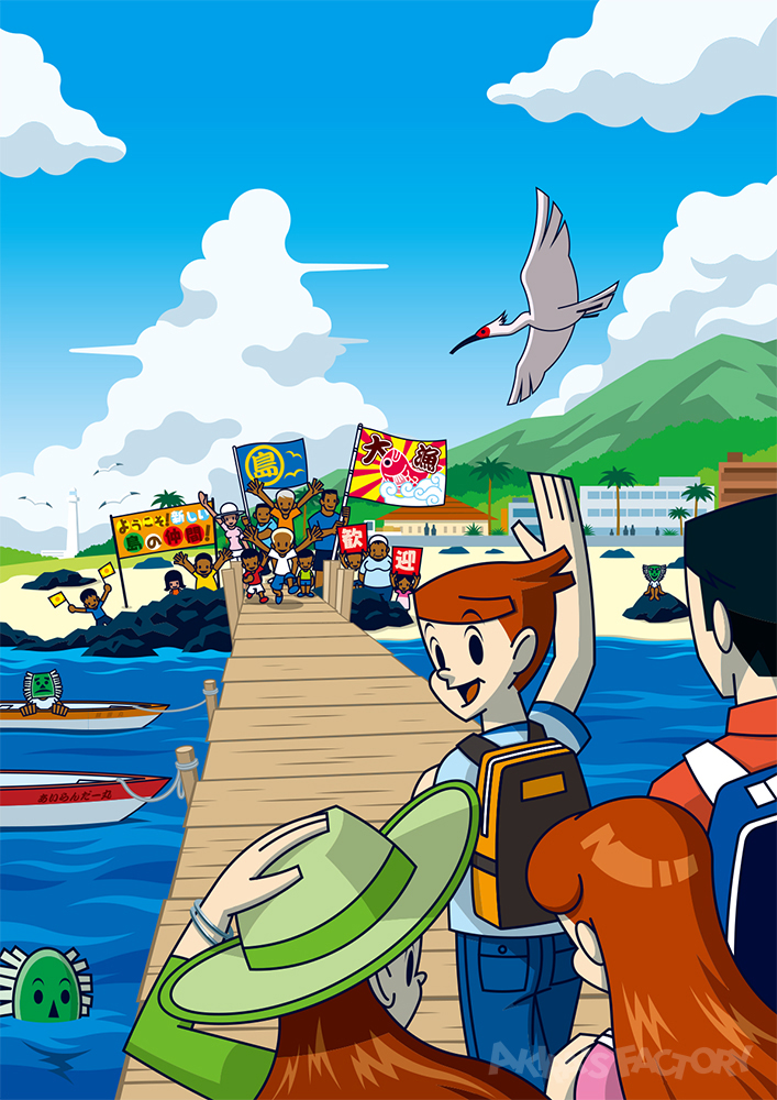当時話題になっていた「Iターン」をテーマに都会の子の祖父母が島に移り住むために観光にきたイメージで制作しました。主人公たちも少し成長しました。